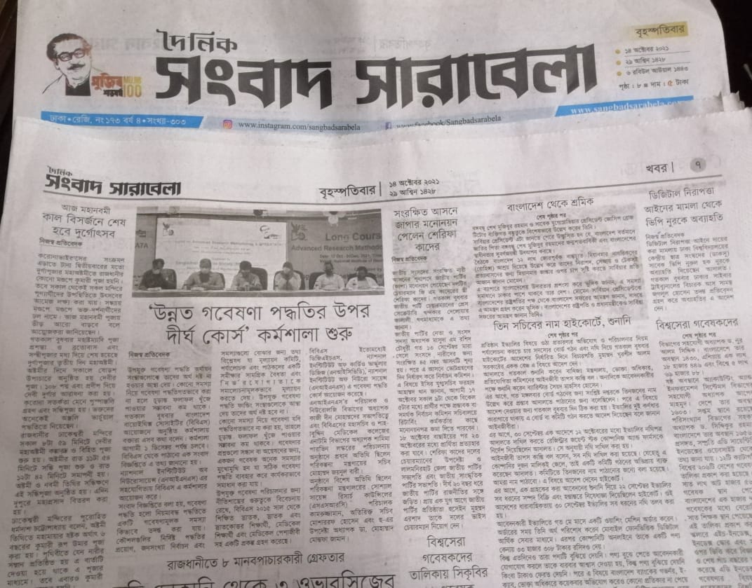 With the generous grants of Social Science Research Council (SSRC), Planning Division, Ministry of Planning, Bangladesh a full time training workshop Long Course on Advanced Research Methodology and SPSS/STATA was started on 13 Oct-1 Dec, 2021 from 8 am - 4 pm for the Post graduate Medical Students of National Institute of Neurosciences & Hospital (NINS) at NINS auditorium. Programme was conducted by Bioethics Society (BBS).